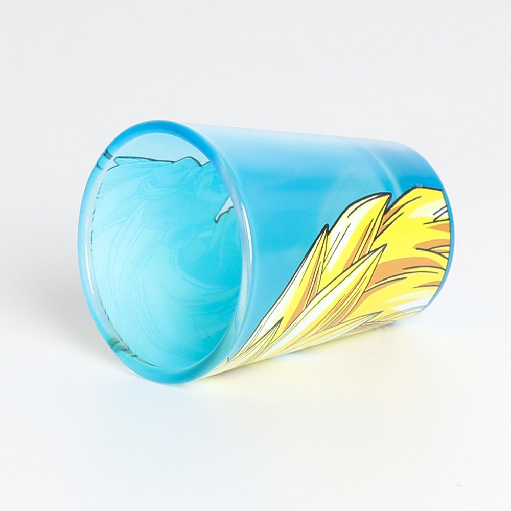 Custom-designed color-changing glass cups are made using thermochromic coating technology. When the liquid temperature reaches a specific range, the coating becomes transparent and reveals the printed design underneath. As the cup cools, the original surface color returns.